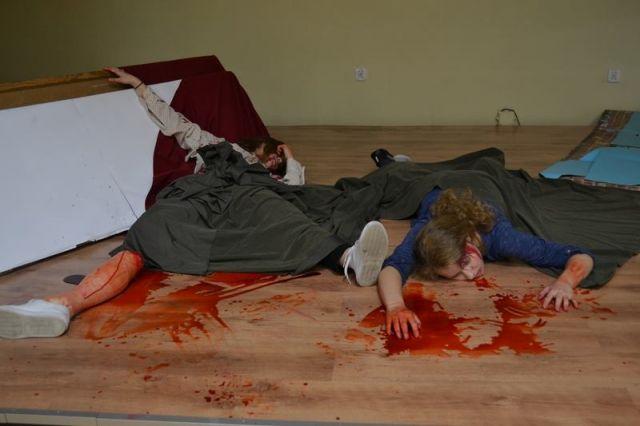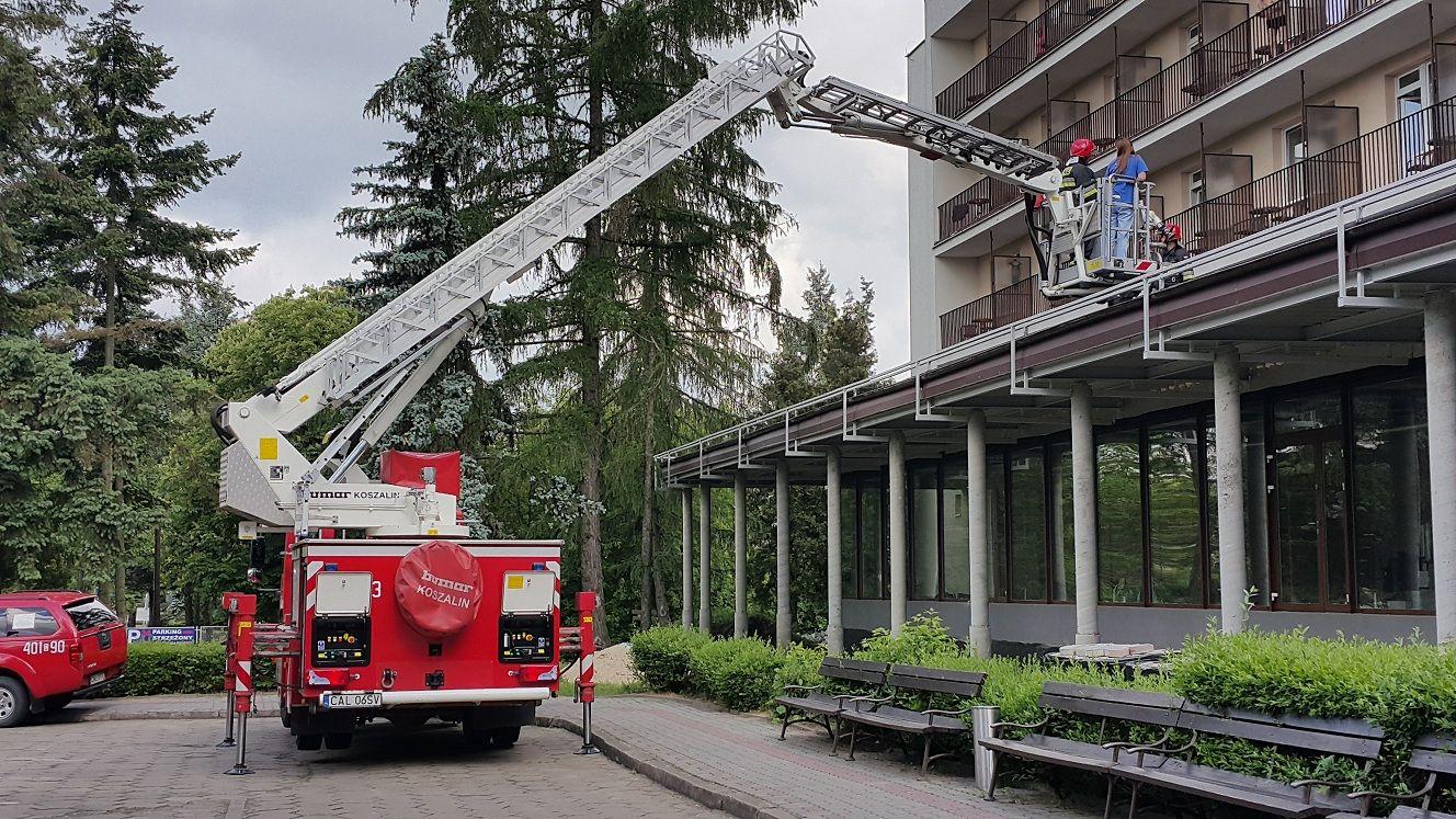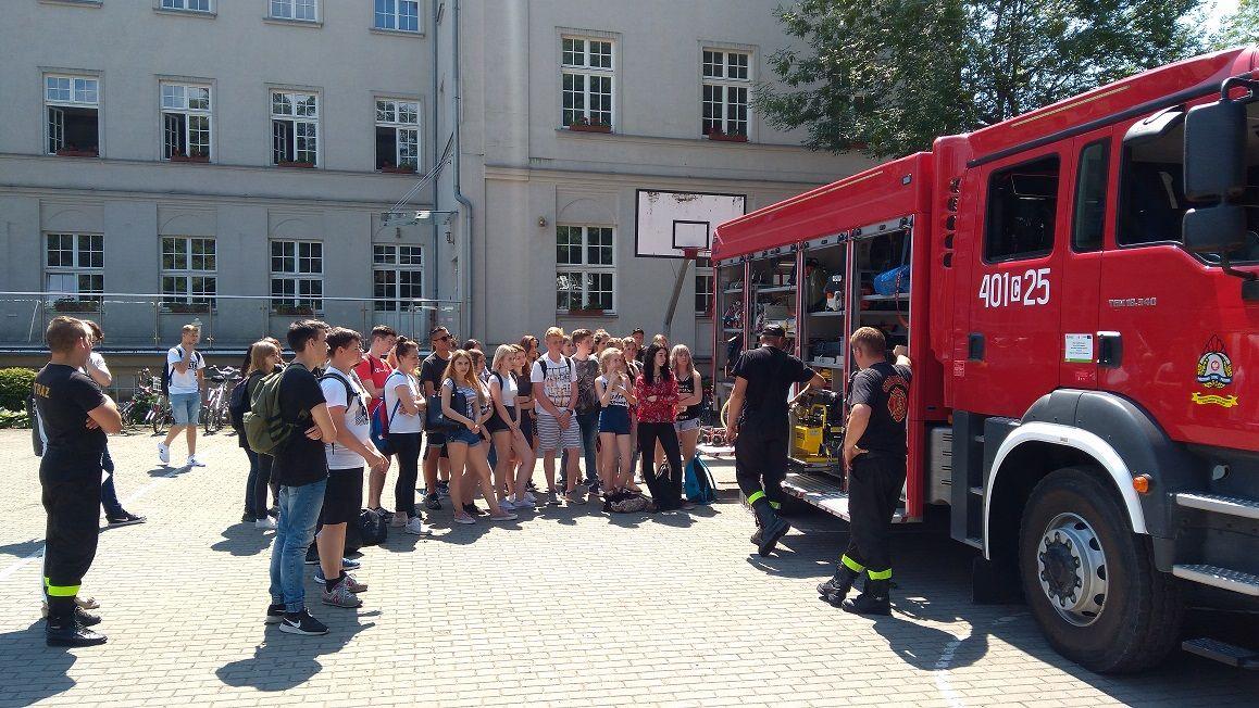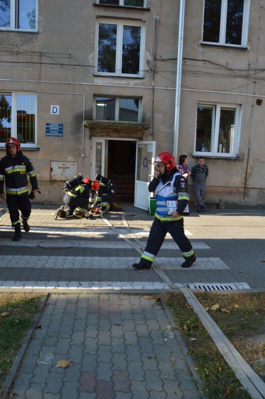 Strażacy ćwiczą w ciechocińskim gimnazjum.