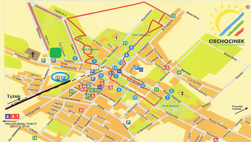 *Zbiórka na paradę ulicami Ciechocinka zaplanowana została na godzinę 13:30 na parkingu przed Campingiem w Ciechocinku przy ul. Kolejowej 4B. (przesyłamy również mapkę na której w niebieskim kółku oznaczono miejsce zbiórki, dużym zielonym kwadratem stadion).