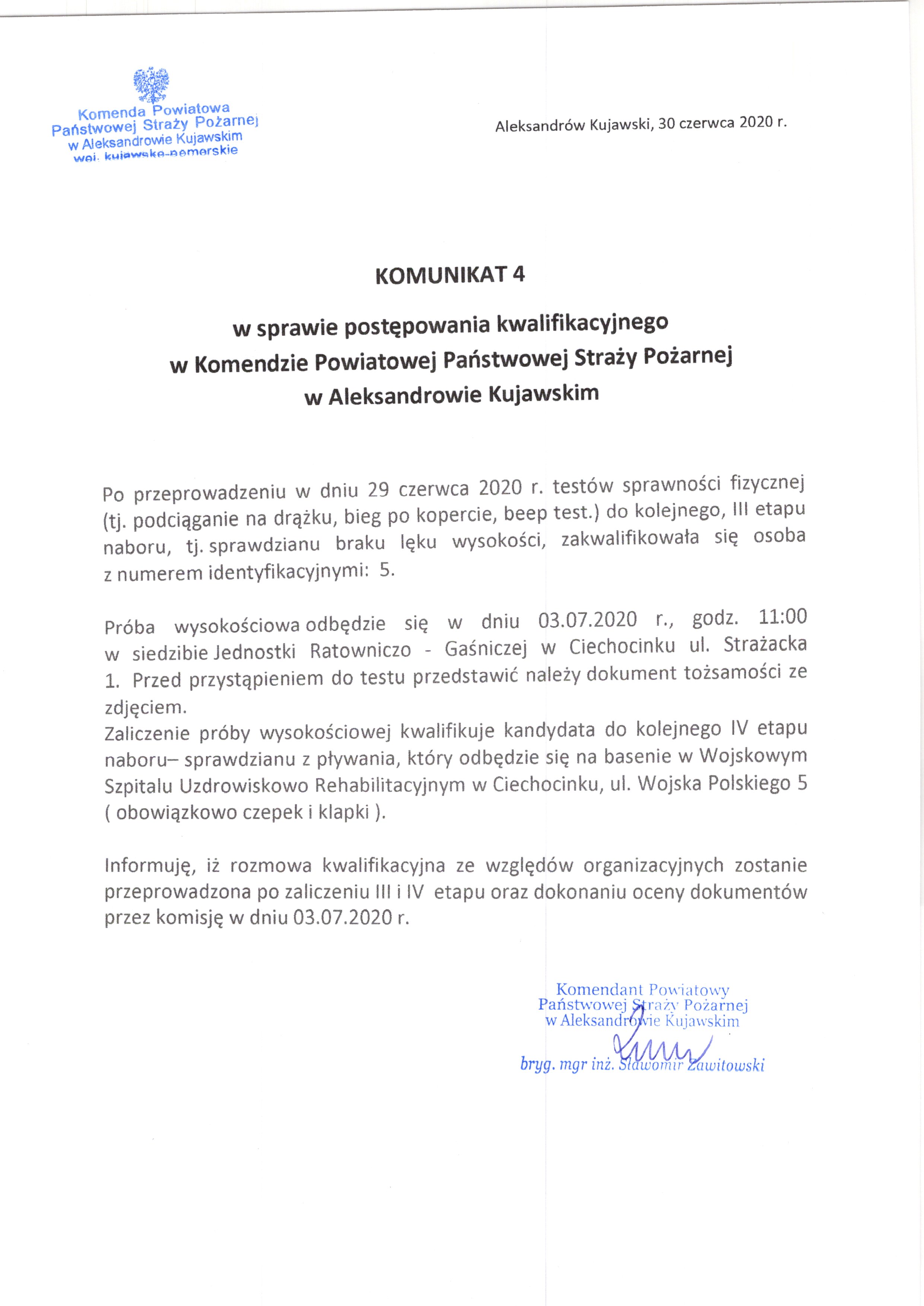 Komunikat 4 dot. naboru do służby w PSP