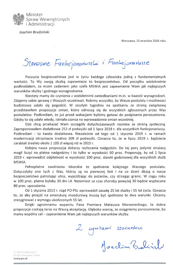 List Pana Ministra Joachima Brudzińskiego do funkcjonariuszy PSP