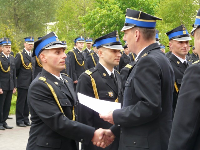 W dalszej części wręczono awanse, dyplomy i odznaczenia nadane z okazji strażackiego święta. Awanse na wyższe stopnie oficerskie wręczono następującym strażakom: