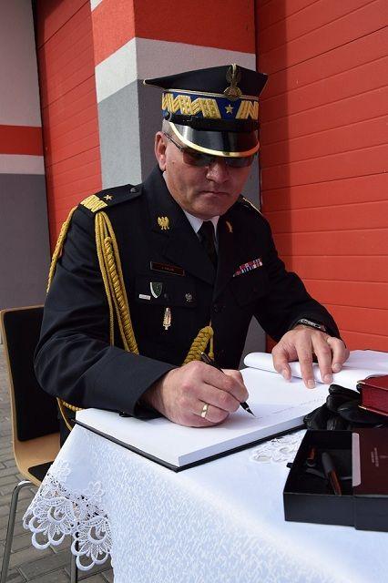 dh. Krzysztofa Sadowskiego przekazała Pani wiceminister Anna Gembicka, natomiast akt przekazania pojazdu wręczył Kujawsko-Pomorski Komendant Wojewódzki PSP