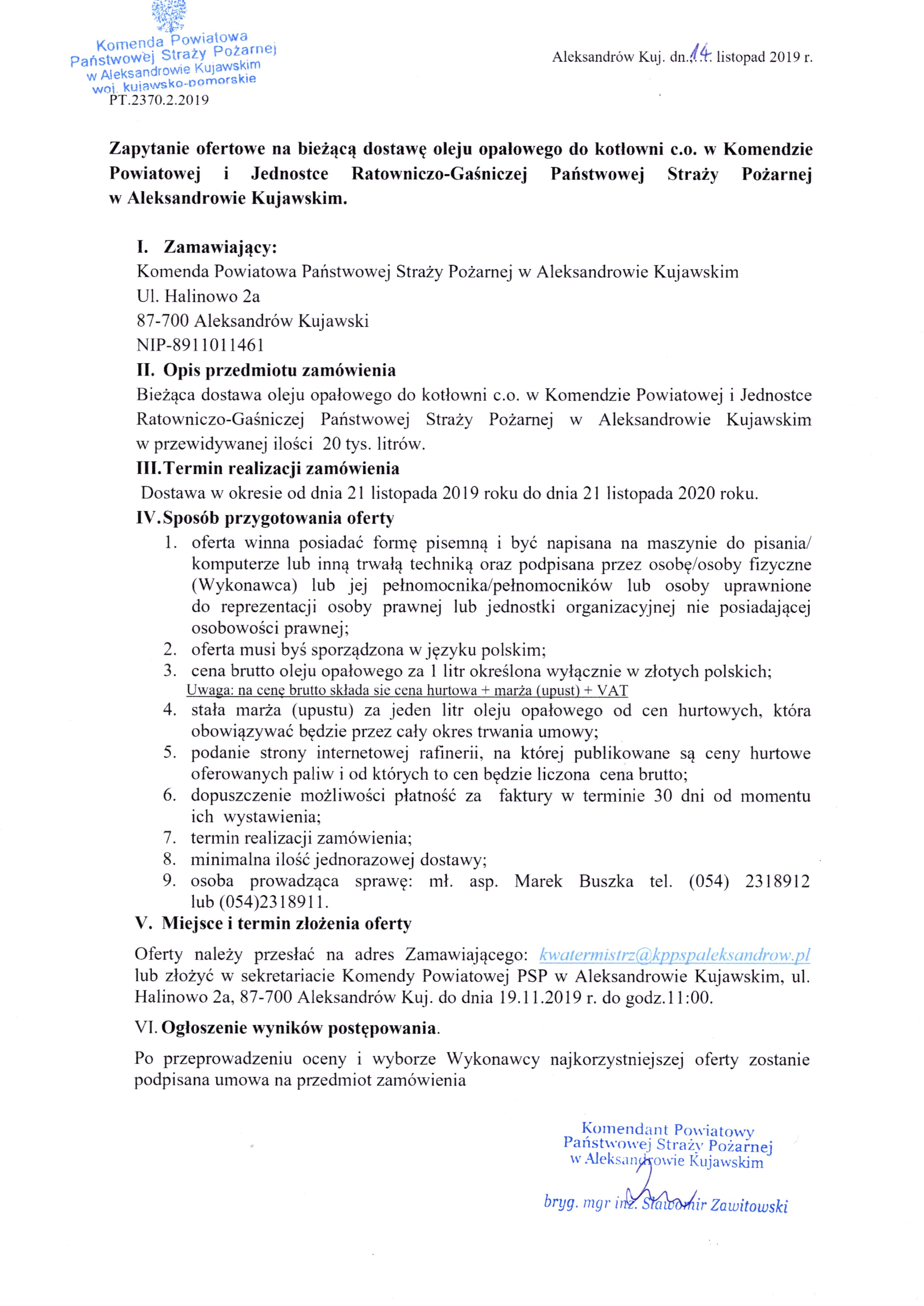 Zapytanie ofertowe na bieżącą dostawę oleju opałowego do kotłowni c.o.